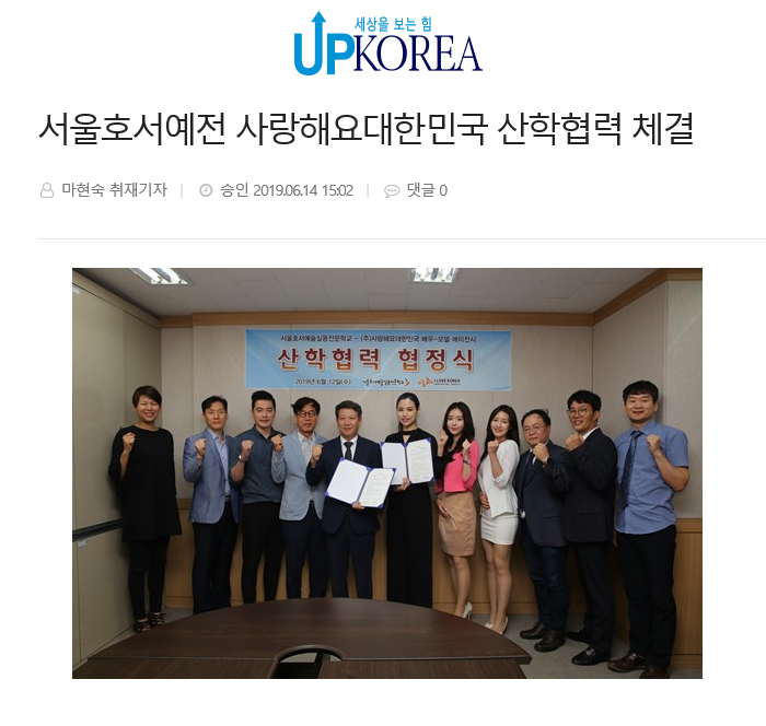 사랑해요대한민국 배우ㆍ모델 에이전시와 서울호서예전은 만능 엔터테이너를 요구하는 현 예술계에 발맞춰 모델, 연기, 댄스 뮤지컬 등 다양한 교육 과정과 산업 현장의 연계로 인적, 물적 인프라를 공유하면서 다양한 분야에서 상호 시너지 효과를 기대하게 됐다.