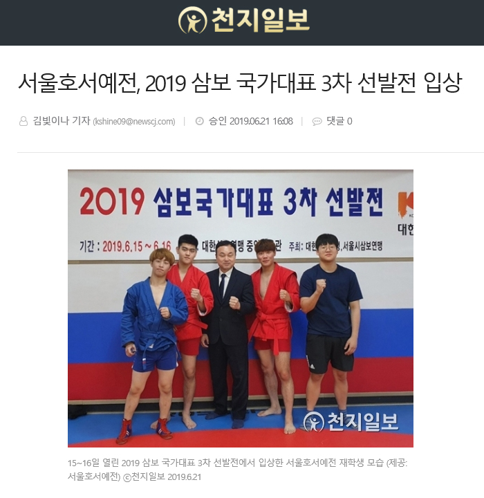 서울호서예술실용전문학교(서울호서예전) 스포츠건강관리계열 내 종합격투기학과 과정이 국가대표선발전에서 김슬빈(스포츠 선발전 57㎏급) 1위, 한승택(스포츠선발전 74㎏급) 3위, 지승민(컴뱃 선발전 68㎏) 1위를 차지했다.