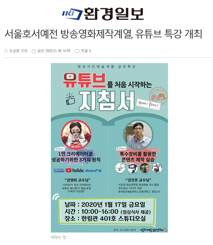 [언론보도]방송영화제작계열, 유튜브 특강 개최