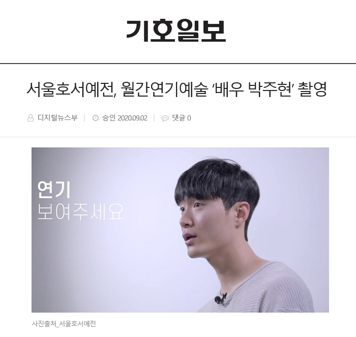 8월 월간연기예술의 주인공은 바로 배우 박주현이다. 박주현은 서울호서예전 연기예술계열을 졸업 했고, 연극 보고싶습니다, 못생긴남자, RAT, 그리고 오페라 백년의 약속 조연출을 맡았고, 부산 공연에서는 일본군 역을 맡아 많은 활약을 펼치고 있다. 최근에는 가수 주기훈의 노을 MV와 가수 알코(Alco)의 불안의 기록 MV에 출연을 했다.