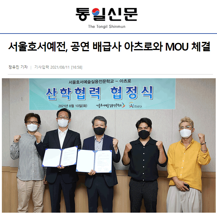[언론보도] 공연 배급사 아츠로와 MOU 체결