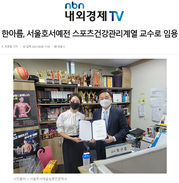 [언론보도]한아름, 스포츠건강관리계열 교수로 임용
