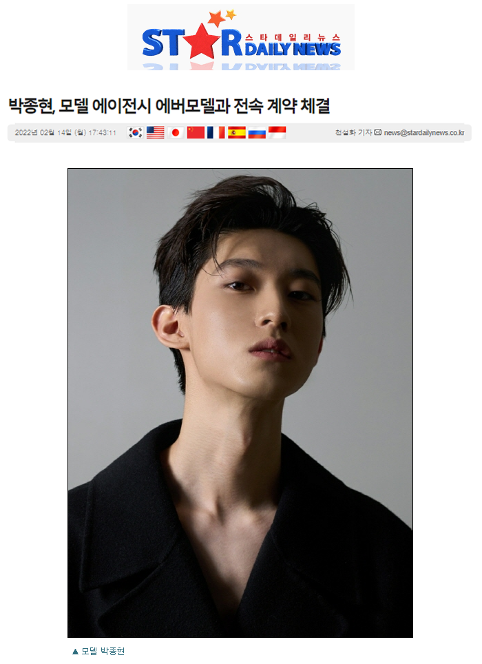 [언론보도] 박종현, 모델 에이전시 에버모델과 전속 계약 체결