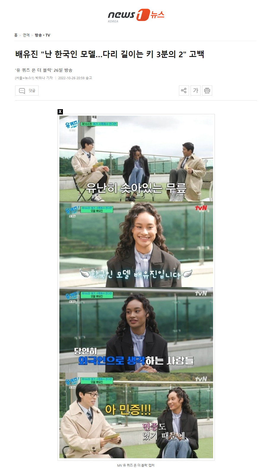 [언론보도] 배유진 난 한국인 모델...다리 길이는 키 3분의 2 고백