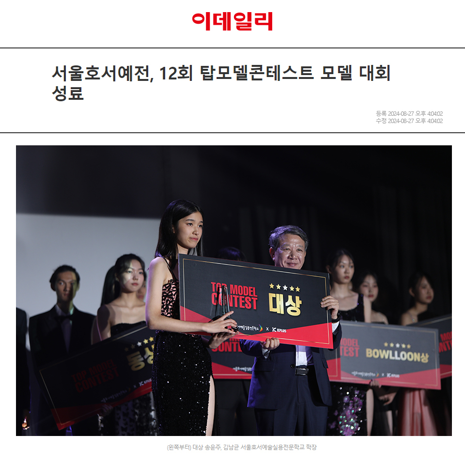 지난 8월 23일부터 24일까지 서울호서예술실용전문학교(이하 서울호서예전)에서 제12회 탑모델콘테스트 본선이 진행됐다.