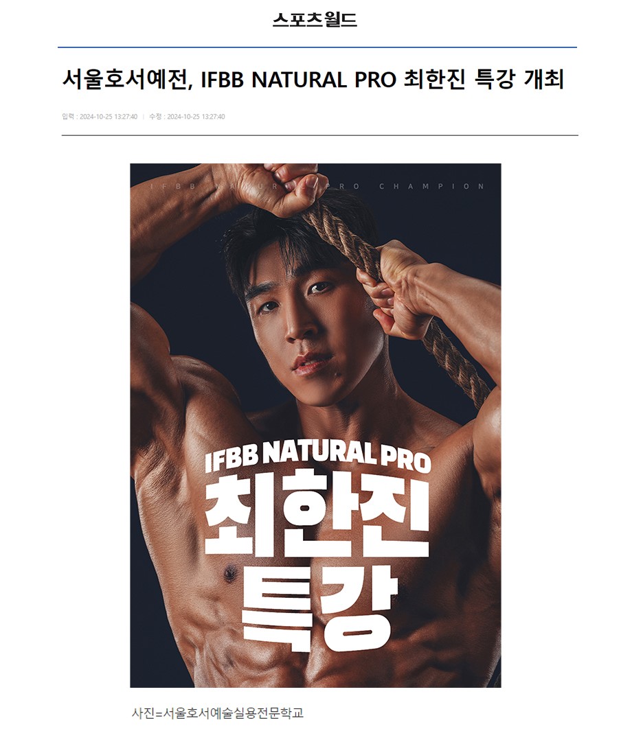 [언론보도] 서울호서예전, IFBB 내추럴 프로 최한진 특강 개최