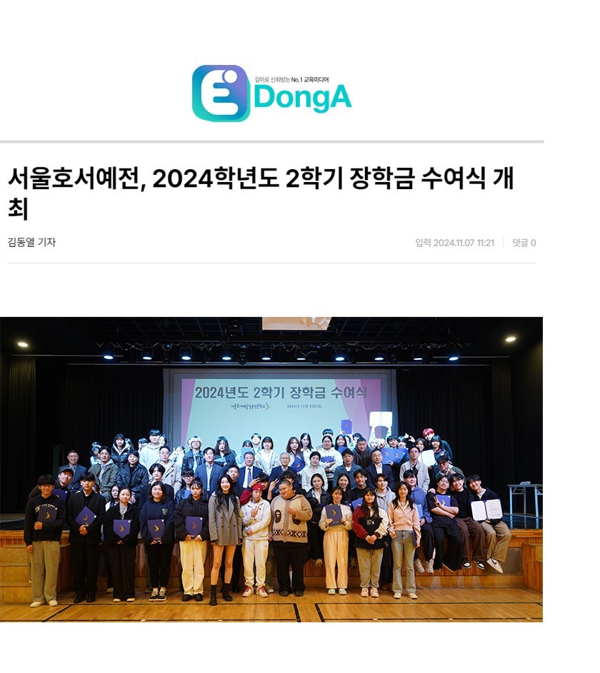 [언론보도] 서울호서예전, 2024학년도 2학기 장학금 수여식 개최
