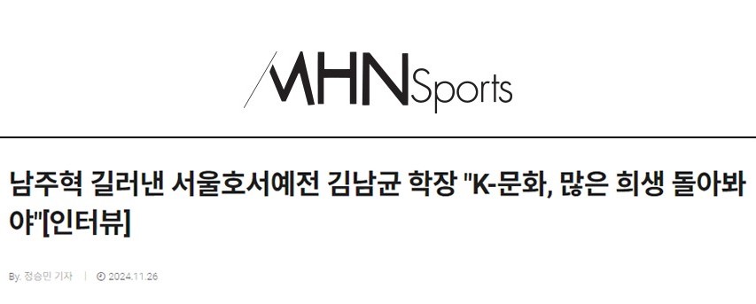 (MHN스포츠 정승민 기자) 남주혁, 틴탑 창조 등 다수 스타를 배출한 서울호서예술실용전문학교 김남균 학장이 K-예술 인재 양성을 위해 노력하고 있는 점을 풀어냈다.