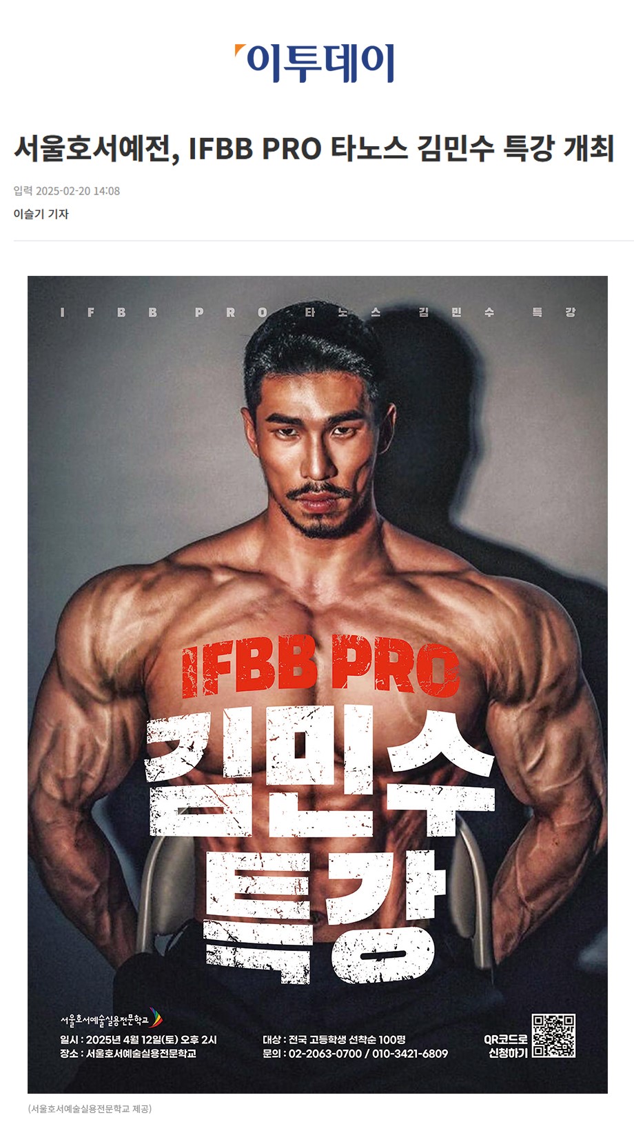 [언론보도] 서울호서예전, IFBB PRO 타노스 김민수 특강 개최